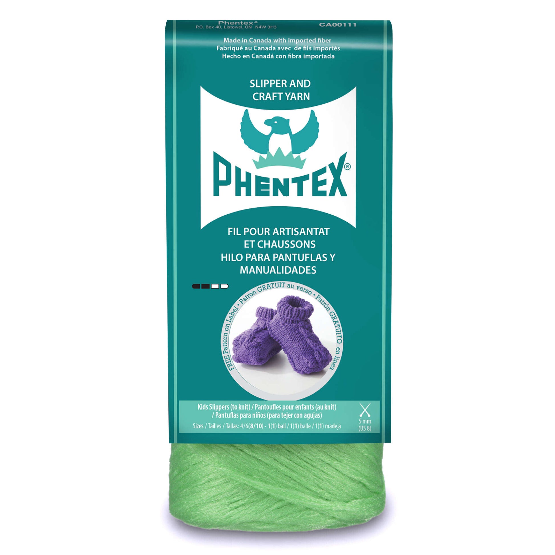 Phentex Slipper and Craft is a unique, craft-focused yarn that makes long-lasting projects that never fade! This yarn is ideal for heavy-use knit or crochet slippers and home décor projects, and it's available in a wide range of neutral shades as well as jewels tones and brights! Conveniently machine washable and dryable for easy care.