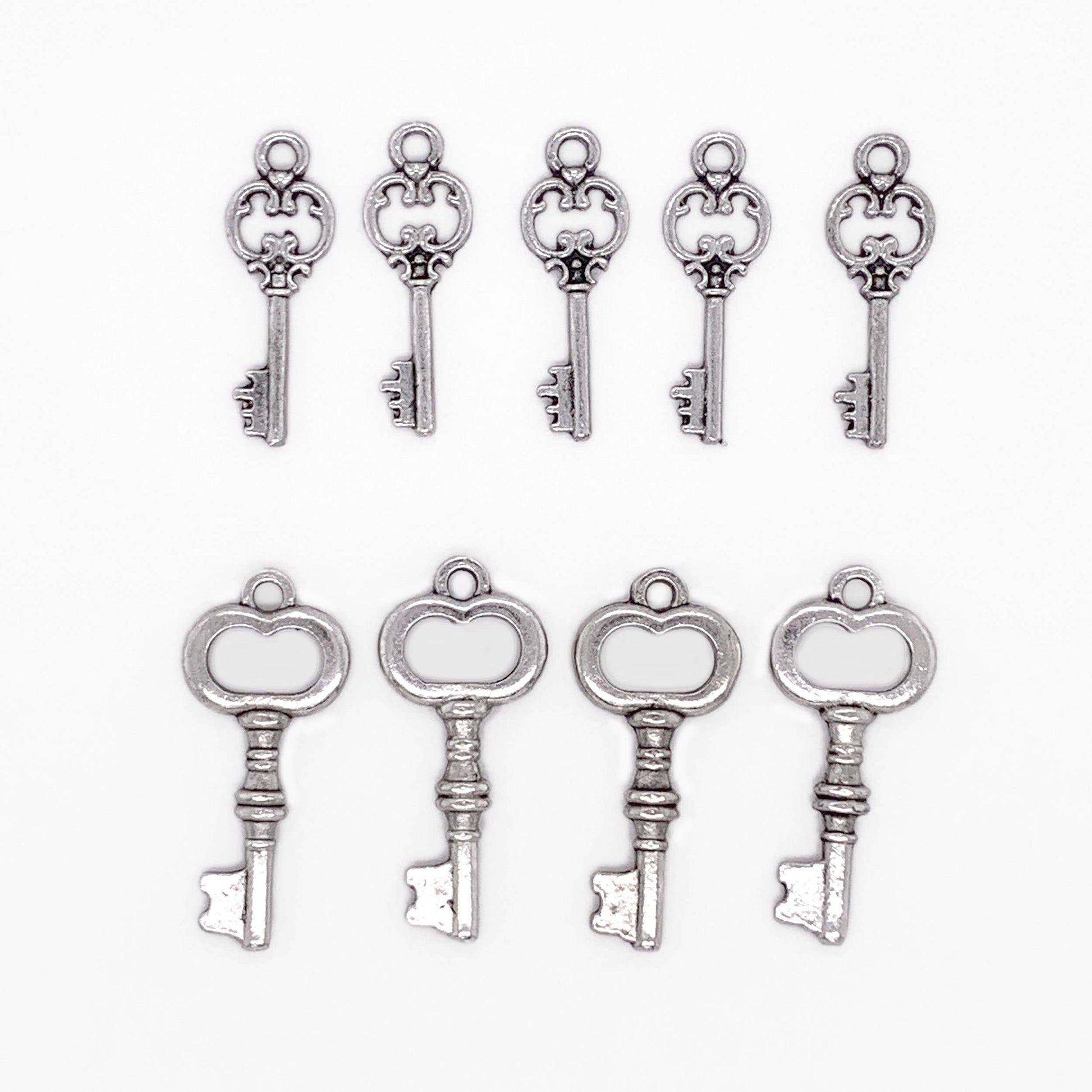 Antique Key Charms in Silver 9 pc