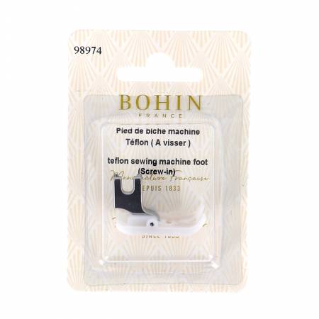 A high-quality and reliable presser foot is an essential element of any sewing machine. Without it, your sewing will never live up to its potential! This non-stick teflon sewing machine presser foot will make your sewing experience much easier. It will never stick to any fabric and it is compatible with most household sewing machine models. This presser foot is a screw-in but BOHIN also carries a clip-in version.