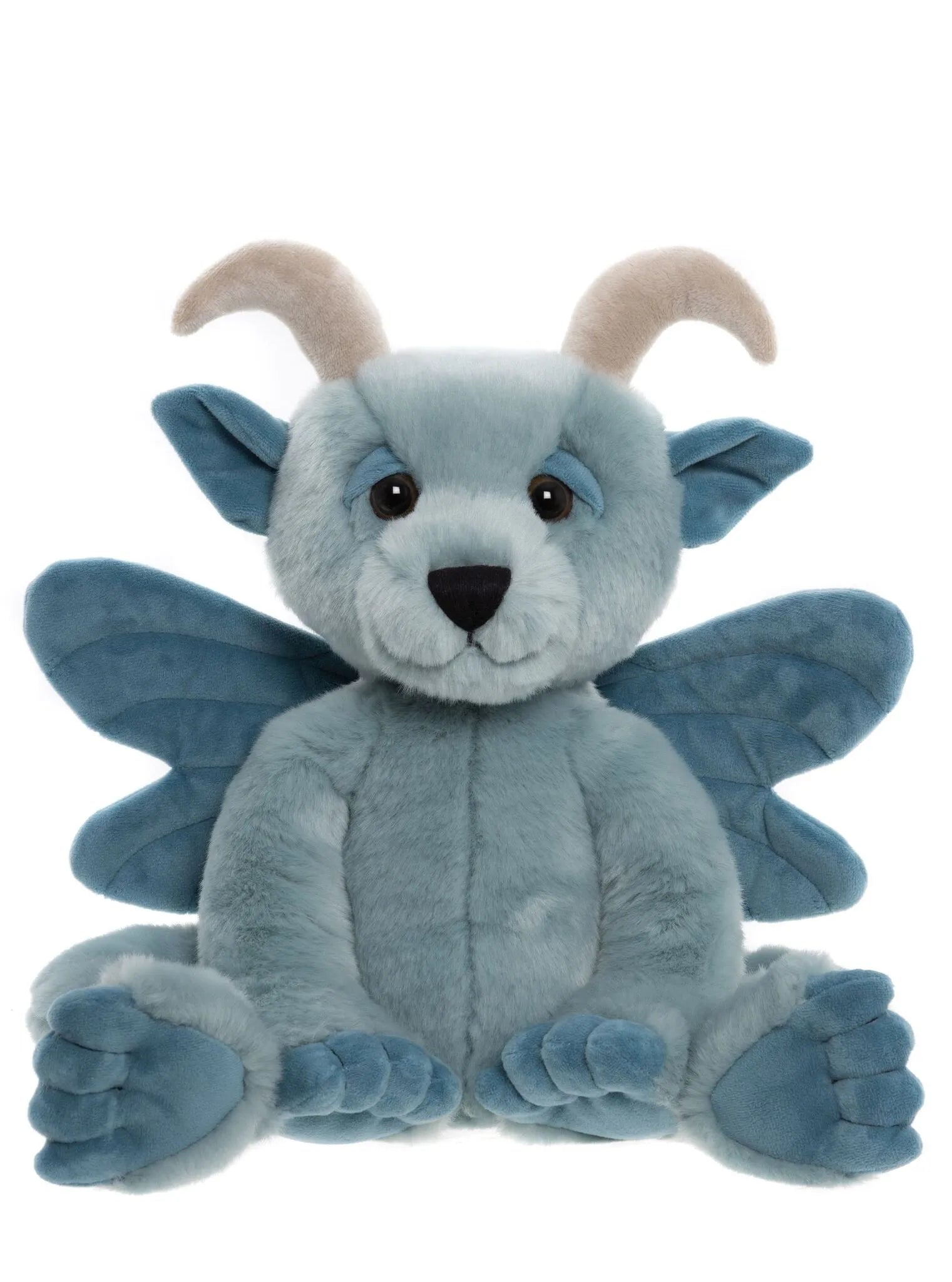 Made from beautifully soft sky-blue plush, Drawbridge stands out with his unique curly horns, gentle expression and softly sculpted wings. Machine Washable. 10″