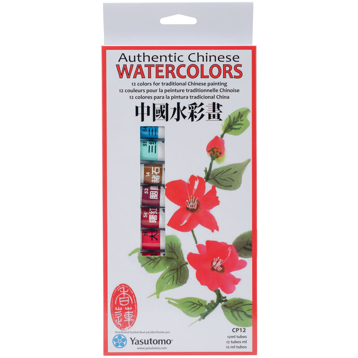 These authentic Chinese watercolors are made from finely ground pigments and offer a smooth consistency. They can be used full strength or thinned with water. They are water resistant after drying when wet mounting on absorbent paper, yet fully water soluble like a traditional watercolor. Mixes easily with both Chinese and Japanese inks. Some colors in this set are semi-transparent while some are opaque.