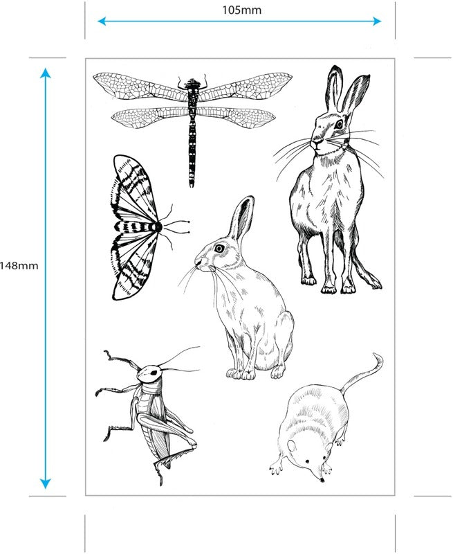 A set of premium clear stamps in coordinating designs (6 Stamps). With protective acetate film printed with colour character references.
