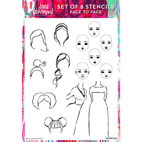 This set of eight stencils is designed by Jane Davenport for Creative Expressions. This stencil set features two bodies, six faces, and six hairpieces. These stencils will clean up easily whichever medium is used and these stencils can be used for cards, scrapbook pages, tags, journals and planners, and other paper crafting and mixed media projects.