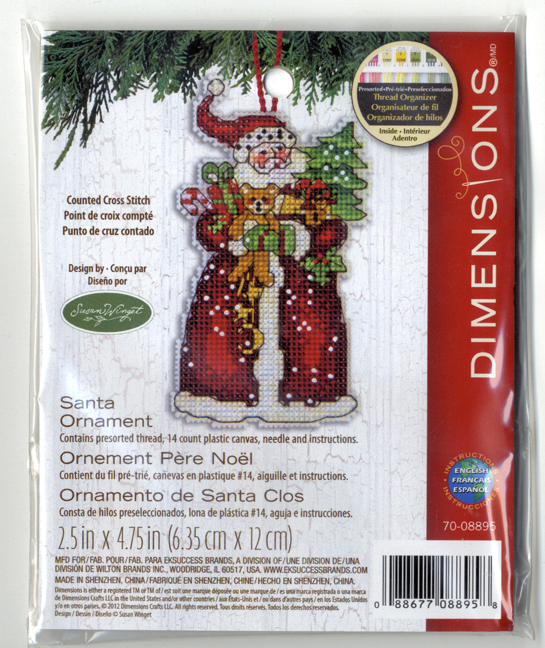 This xstitch kit is from Dimensions, Inc. and is Inspired by Susan Winget's Glad Tidings Collection (© Susan Winget.) The finished design size is 2.5" x 4.75" (6.35 x 12 cm).