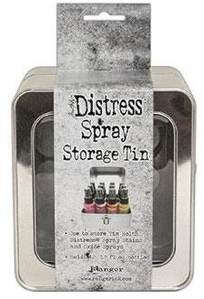 Tim Holtz Distress Spray Storage Tin is the ideal storage solution for Tim Holtz Distress Spray Stains and Tim Holtz Distress Oxide Sprays. Organize and transport Distress Sprays easily in this convenient tin. Features a clear window & hinged metal closure. Holds 12 - 1.9 fl oz spray bottles.