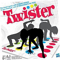 TWISTER game challenges you to put your hands and feet at different places on the mat without falling over! Be the last player standing to win. Two new moves! With Spinner’s Choice, the spinner makes up a move for the other player to do. Fun Spinner’s Choice ideas on the back of the spinner! If the spinner lands on Air, the player must put a hand or foot in the air!