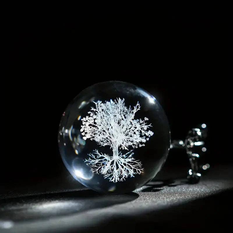 Arômes & Évasions : Home Decor -Crystal Ball on Led Stand -Carved Tree of Life
