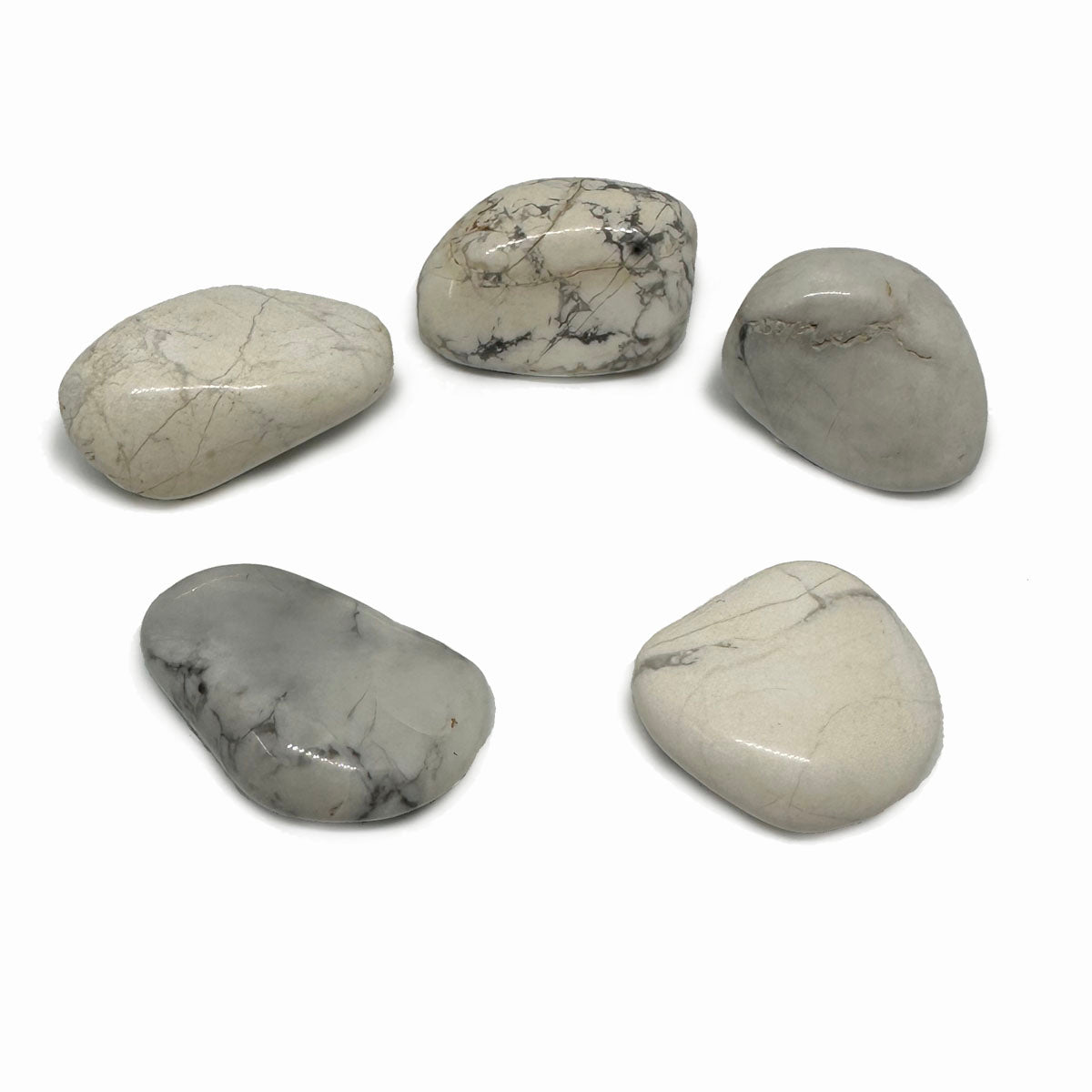 Howlite is believed to have calming and soothing properties, and it is often used in meditation and healing practices. It is said to aid in reducing anxiety, stress, and tension and promoting restful sleep.