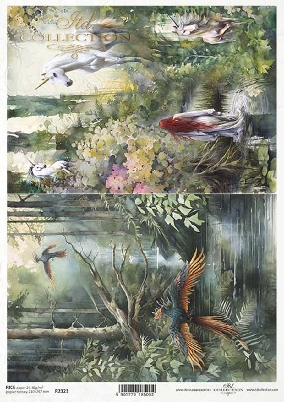 ITD Collection Mystical Unicorn and Phoenix A4 Rice Paper