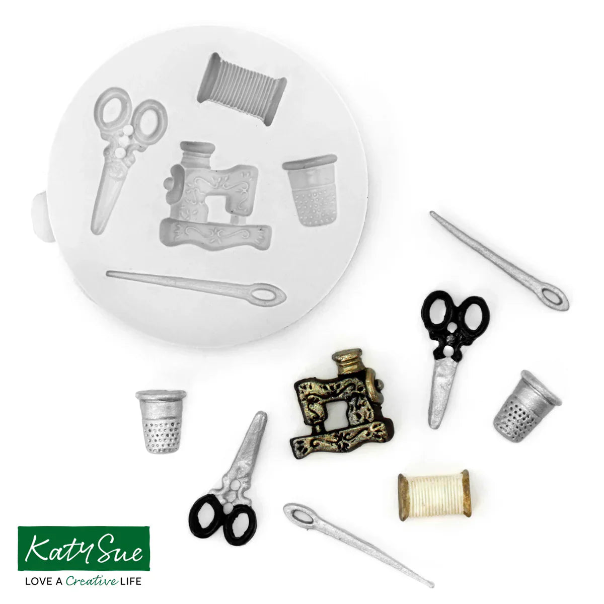 This versatile silicone mould makes it easy to create elegant, sewing-themed embellishments to add detail to your projects. The mould can be used for cake decorating, card making and crafts, and the designs work particularly well using resins and clay, picking up the intricate features of the vintage style sewing machine, ornate dressmaker's scissors, texture of the thimble, bobbin of thread and a fine needle. Original design by Alphabet Moulds.