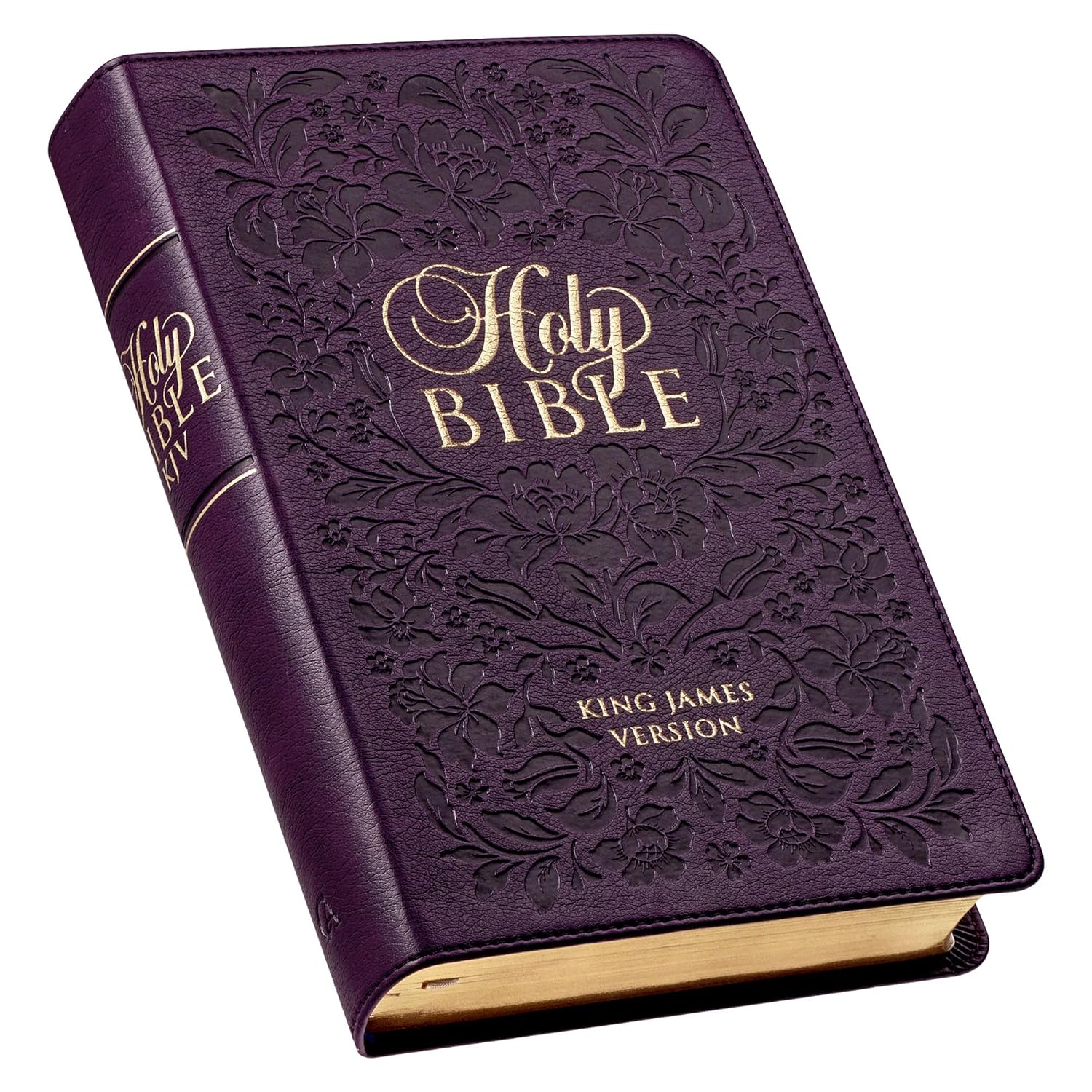 This Purple Faux Leather Giant Print Bible with Thumb Index features the Classic King James Version of the Bible wrapped in a rich purple cover. The Giant Print Bible has a comfortable 14-point type print, presented in a double-column format. A lay-flat binding makes it easier to read when the Bible is opened all the way. This edition is full of extras to assist you in your Bible study or personal devotion time and include the words of Christ in red ink, eight full-color maps, a handy concordance, and a Scripture verse finder organized by theme. The Bible also has cross-referencing, thumb indexing, and a reading plan that will lead you through the entire Bible in one year.