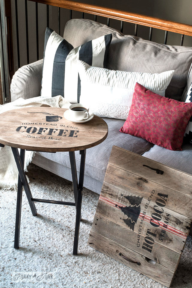 Christmas Blend Hot Cocoa 5 LB Bags is a charming grain sack styled stencil with a group of 3 festive hand drawn Christmas trees,