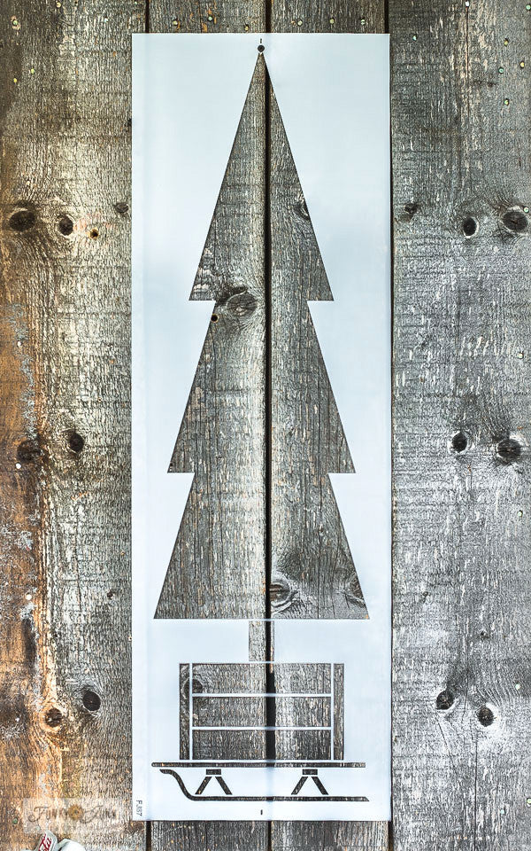 Designed as a tall evergreen tree, tucked inside a rustic crate tree skirt set on top of a sleigh. The tree is plain so you can decorate the tree with patterns or lights, etc. as desired!