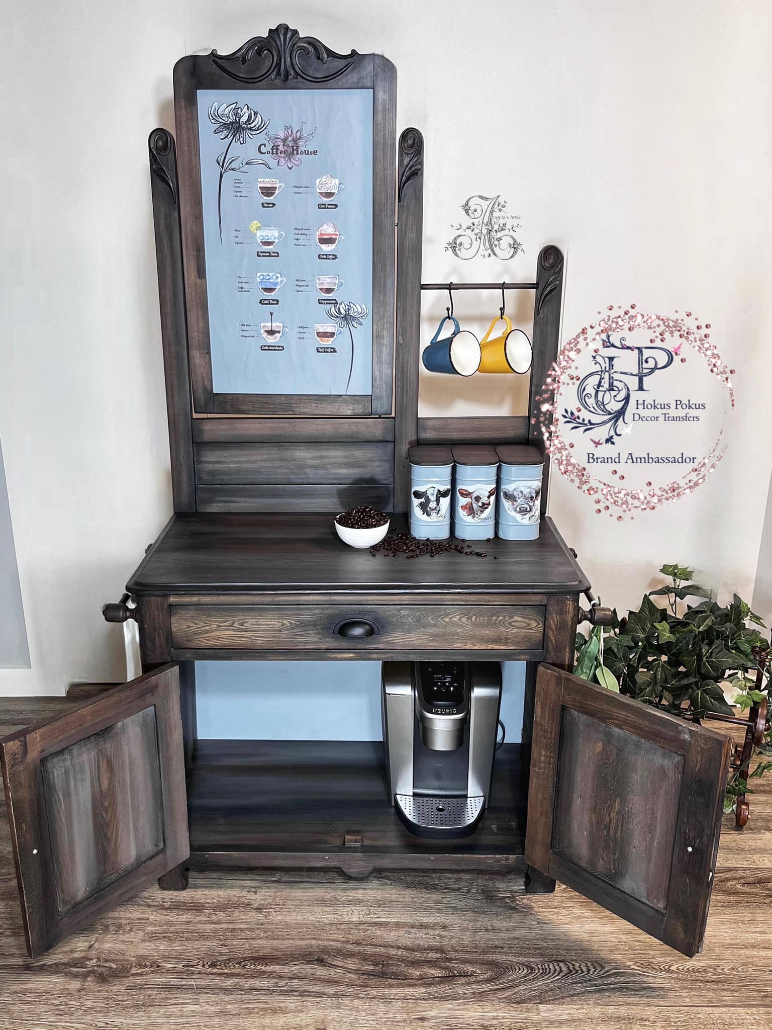 Hokus Pokus Decor Transfers are highly detailed and stylish and can be applied to a variety of smooth surfaces, including wood, painted furniture, glass, mirrors, and more. We offer rub-on transfers that can be cut out and used for a variety of art projects. To create a piece of art, you can remove the backing paper and rub it onto your favorite project.
