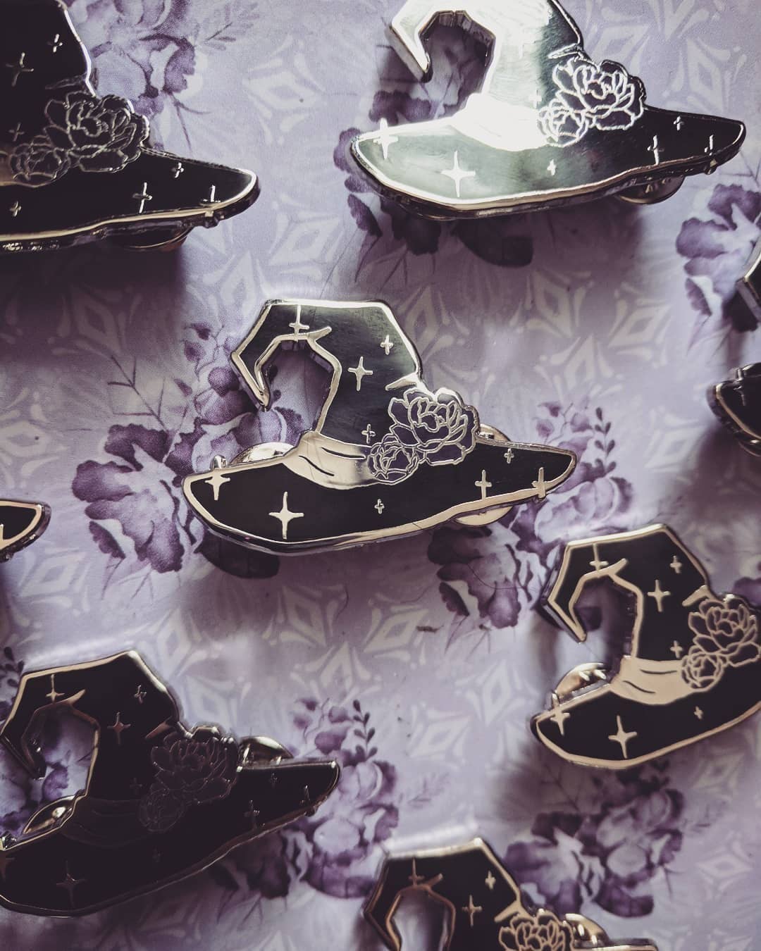 Complete your Peony Witch pin set with this gothic, cute, and elegant witch hat! A perfect companion to the Peony Witch Broom pin.