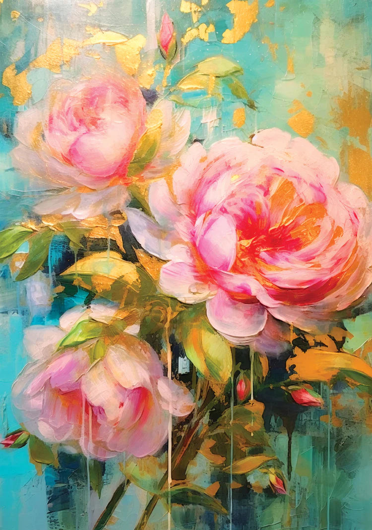 “Bold Blooms” will add stunning, floral beauty to your next DIY project! With delicate, fully bloomed pink roses set on a sun-kissed background, this new A1 Decoupage Paper will elevate your work! Redesign’s A1 Decoupage Paper is printed on sturdy paper, allowing you to create unique and personalized decor pieces, such as wall art, furniture accents, and more. The unique design is perfect for decoupage projects, allowing you to layer and arrange the images to create a stunning finished product.