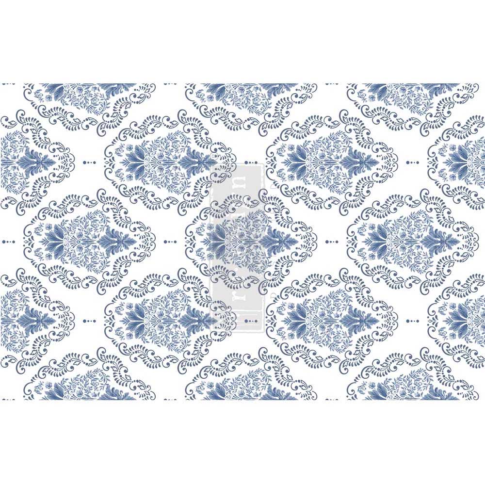 A love for damask patterns led Kacha to create a Versailles-inspired, blue toned Decor Transfer named, Dana Damask! Apply to furniture, walls, cabinets, and more to instantly redesign your space; or, cut apart to complete multiple smaller projects. To Use: Peel backing sheet from transfer and set on prepared surface. Rub on transfer with included stick or Transfer Tool. Remove top sheet and burnish with soft cloth. Seal, if desired, with water-based poly or wax. Decor Transfer Tube includes: total sheet size 24″x35″, cut into 2 sheets.