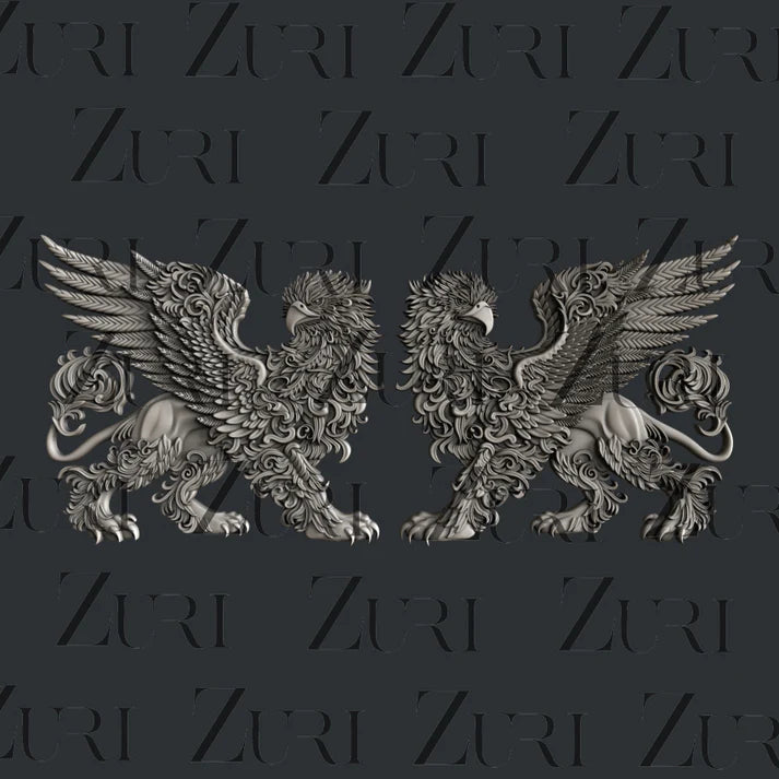 Casting size (each griffin): W: 9.5 cm (3.74”) × H: 10.2 cm (4.02”) × D: 0.78 cm (0.31”)
